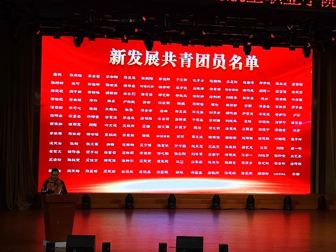 第二项,宣读新发展团员名单。校团委秉承客观公正、民主公开的原则,通过个人申请、团支部和团总支推荐、校团委考核,最终决定发展758名新团员。