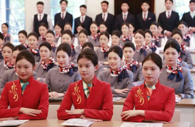 海选环节聚焦职业形象初筛,面试官以 “第一印象” 为核心,重点考察学生们的仪容仪表与体型体态。同学们有序列队,身着整洁挺括的职业装,搭配精致得体的妆容,站姿挺拔、精神饱满,举手投足间尽显 “高度职业化民航员工” 的西航风采。