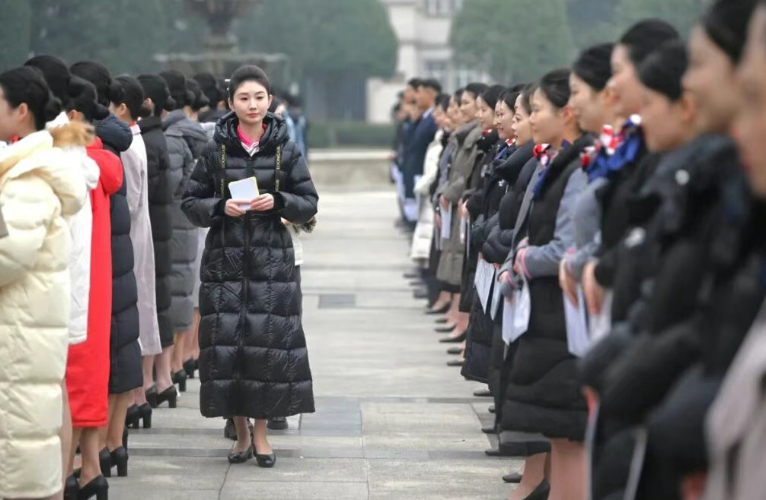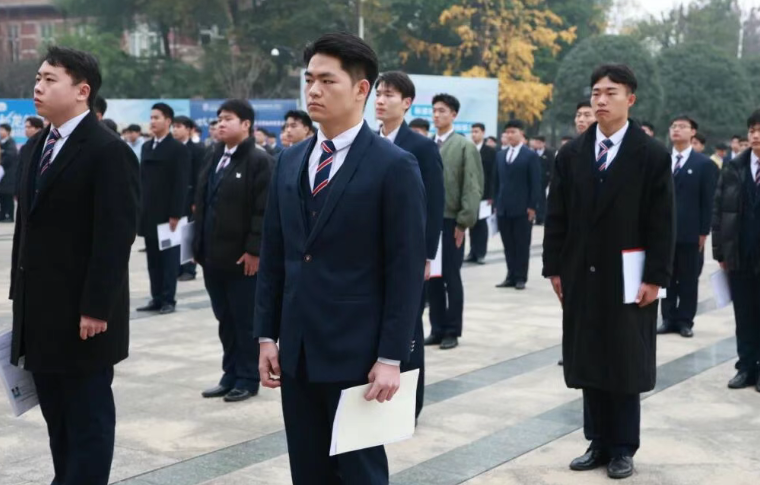 初试环节聚焦职业形象考察,核心核验仪容、仪表与仪态。同学们按序列队,身着精致得体的职业装,自信从容的神态搭配规范大方的举手投足,充分展现出西航学子昂扬向上的精神风貌与扎实的职业化素养。