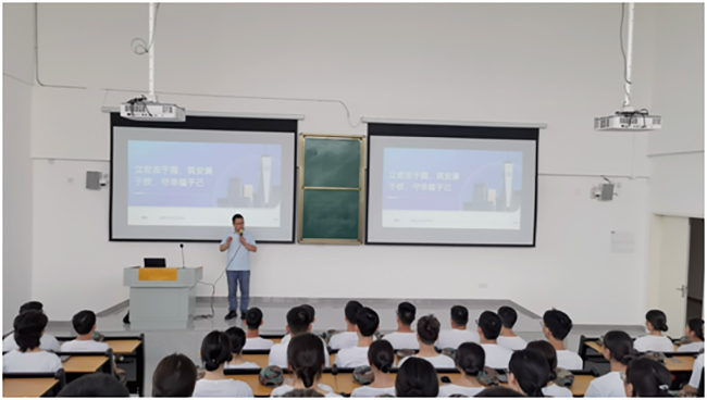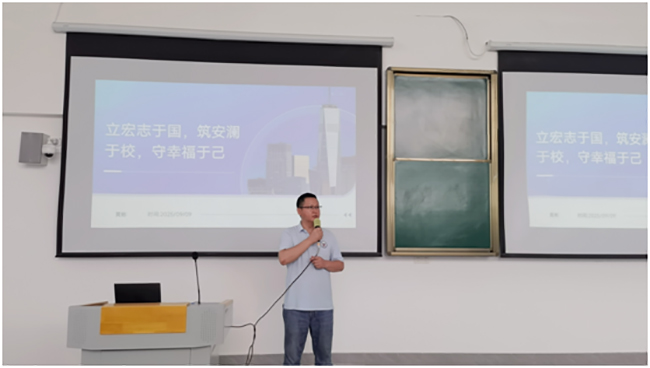 随后,黄彬院长紧扣讲座主题,从三个维度为新生们带来深刻分享。在“立宏志于国”层面,他强调,当代大学生生逢其时,更肩负重任,要将个人理想融入国家发展大局,树立为国奉献的远大志向,以青春之力担当时代使命。谈及“筑安澜于校”,黄院长着重强调校园安全是大学生活的“压舱石”,要求新生们时刻紧绷安全之弦,切实提升人身、财产、网络等多方面的安全防范意识;同时要严格遵守校纪校规,做到尊重师长、团结同学,主动参与校园文化活动与社会实践,在实践中锤炼综合能力,共同营造文明和谐、秩序井然的校园氛围。