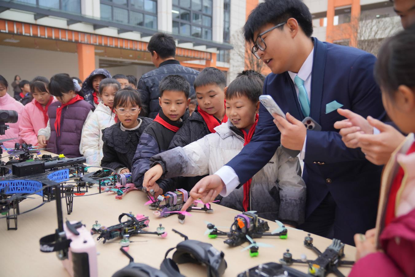活动紧扣“科技启蒙、梦想起航”主题,内容丰富、形式多样,涵盖无人机知识讲解、实机飞行演示、沉浸式VR体验、机型深度解析、模拟飞行竞技、无人机足球赛及创意绘画等多个环节。支部党员与入党积极分子带头参与,青年志愿者们充分发挥专业特长,将航空理论转化为生动实践,为小学生们带来了一场集趣味性、知识性与互动性于一体的科技盛宴。