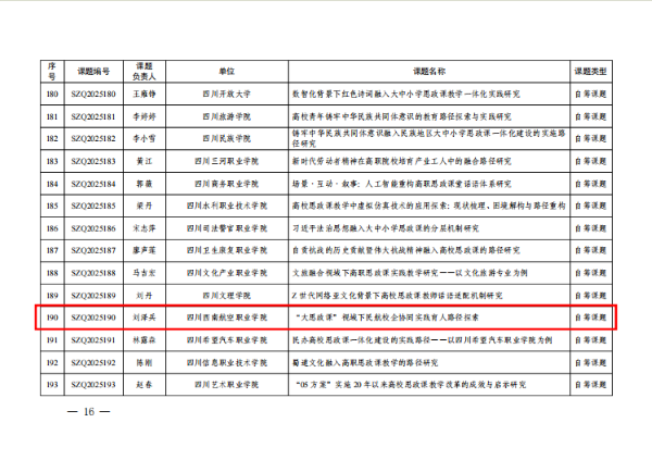 1.课题负责人:刘泽兵——《“大思政课”视域下民航校企协同实践育人路径探索》(SZQ2025190)