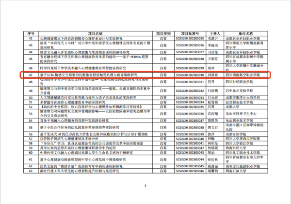2.课题负责人:冯绪春——《基于认知-情感交互模型的民航旅客投诉触发机理与疏导策略研究》 (SCSXXH202503030)