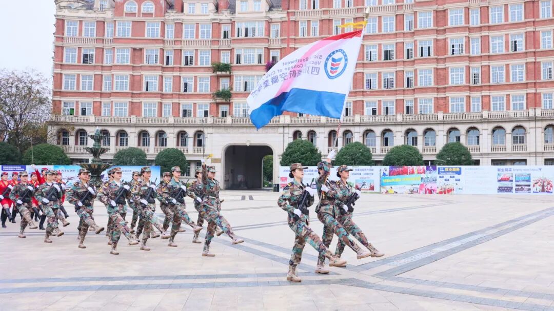 步入凯旋门,太阳广场与第一教学楼熠熠生辉。凤凰女子仪仗队英姿飒爽,礼仪秀表演充分展现西航学子风采;走进领先实训中心,沉浸式感受民航安检、乘务、机务高度还原全流程真实工作场景的实践课程;足球场上,无人机拉起欢迎条幅,空保学员们以实战化姿态完成格斗演练。