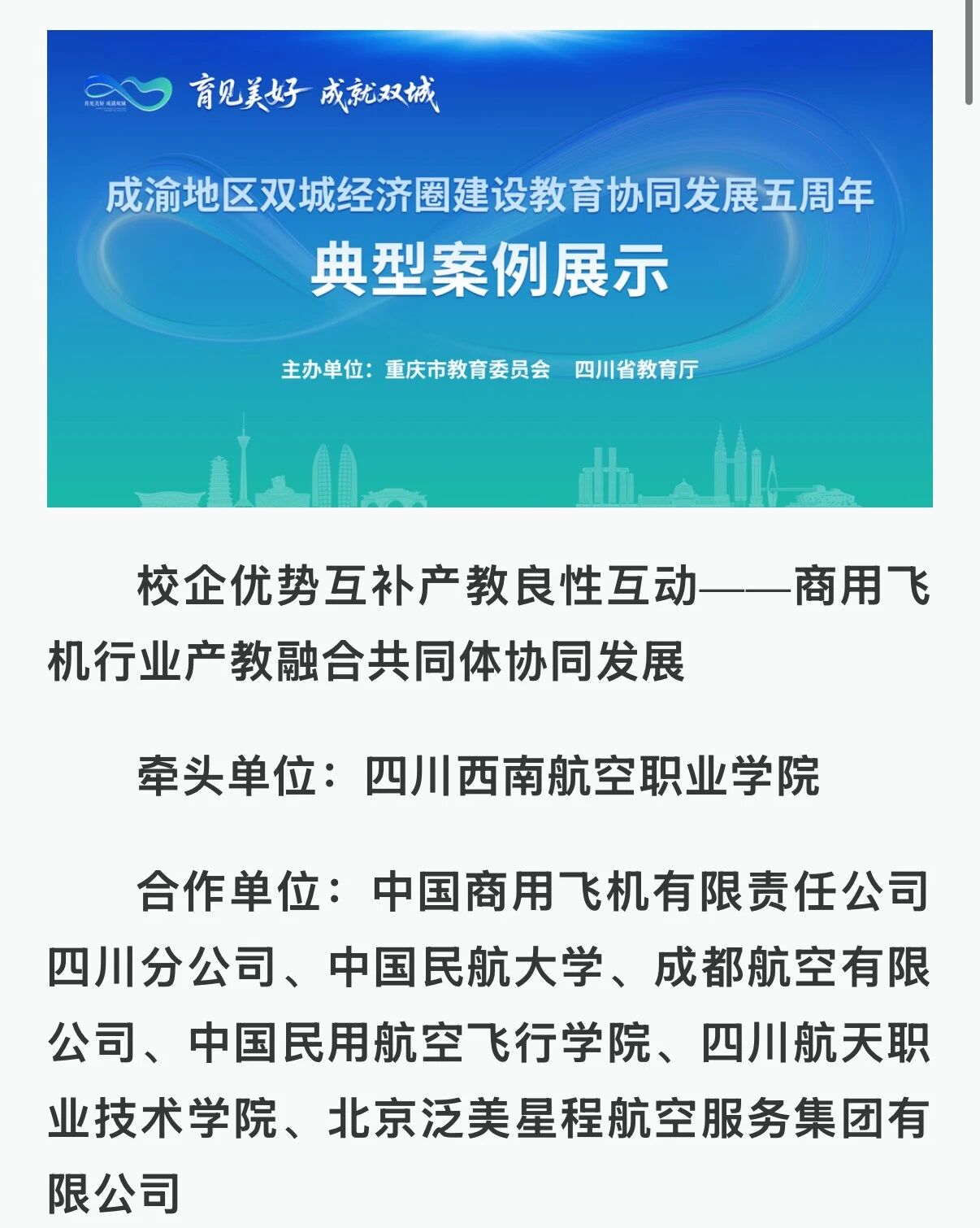 此次入选,不仅是上级主管部门对我院深耕产教融合、主动服务区域经济发展的高度认可,也是我院办学特色与实力的集中展现。未来,学院将持续深化校企协同联动,进一步完善教育创新机制,推动产教深度融合,着力培养更多扎实专业能力的高素质民航人才,为成渝地区双城经济圈建设提供更坚实的人才支撑,推动地区经济发展。