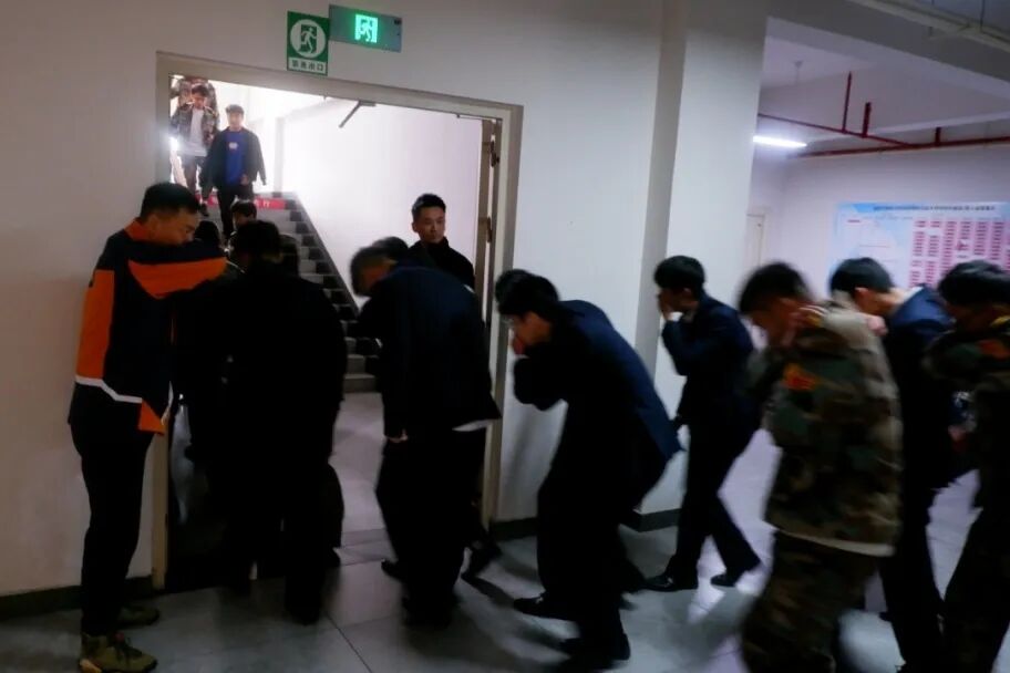 下午14时,地震应急演练准时开始。随着地震警报拉响,教学楼内的师生迅速做出反应——同学们立即躲避到课桌下方,用书本护住头部;待主震模拟结束,又在老师的带领下,按照预定路线快速向安全区域转移。整个过程中,师生配合默契,疏散高效,展现出了良好的应急素养。