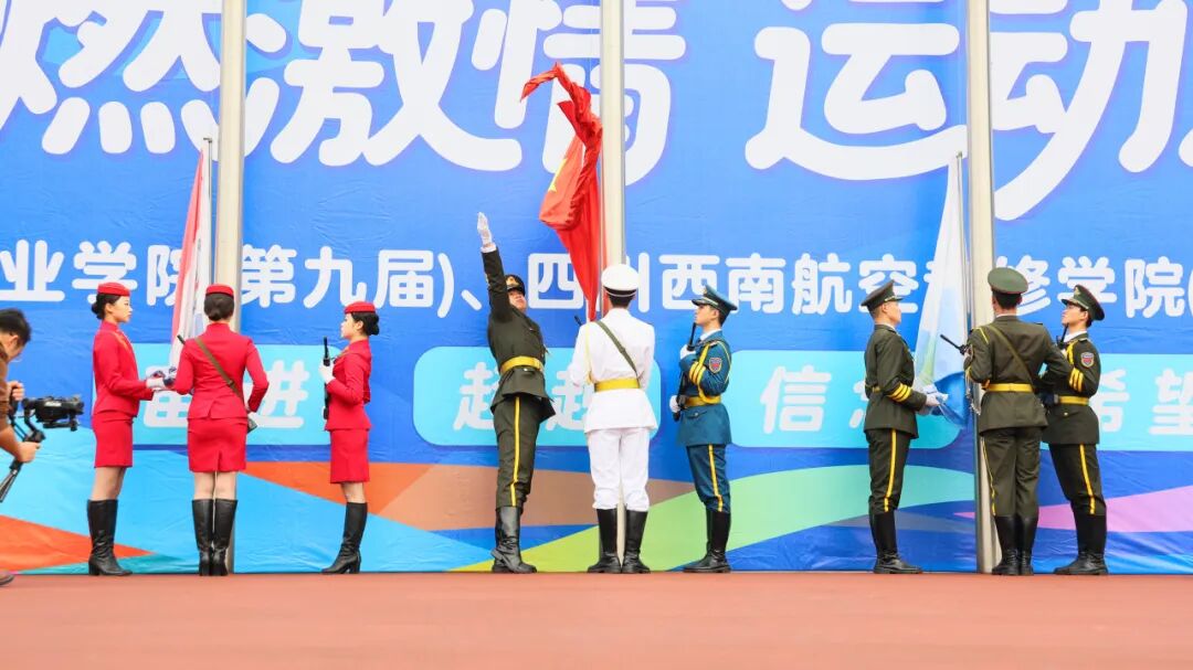 在全场期待的目光中,学院执行院长李玉龙宣布:"四川西南航空职业学院(第九届)、四川西南航空专修学院(第十九届)军体运动会正式开始!"这一刻,蓄势待发的激情被彻底点燃。掌声、欢呼声、呐喊声汇成一片!