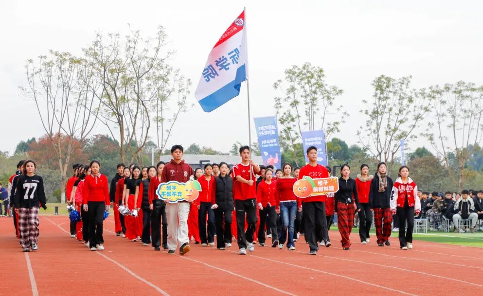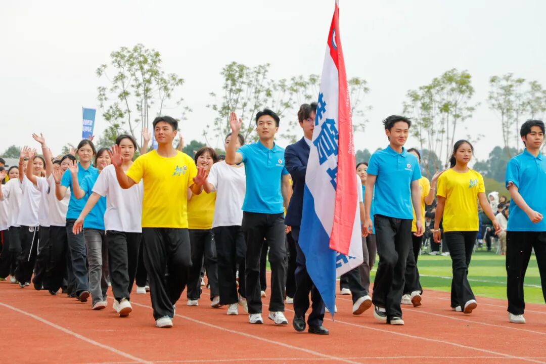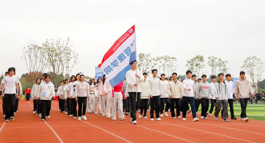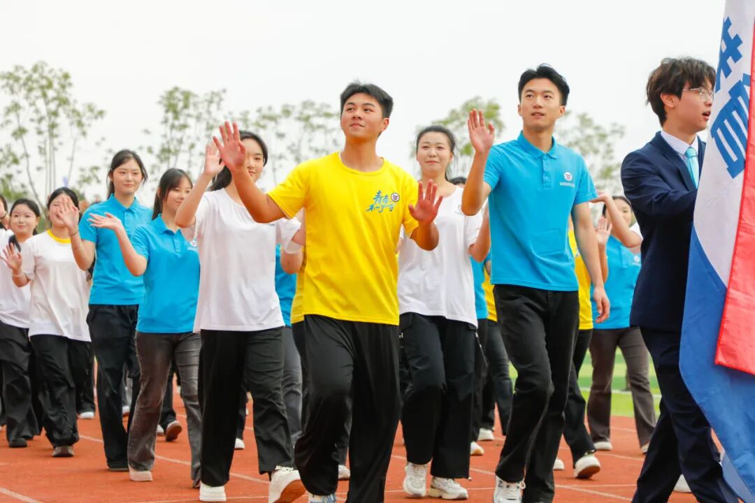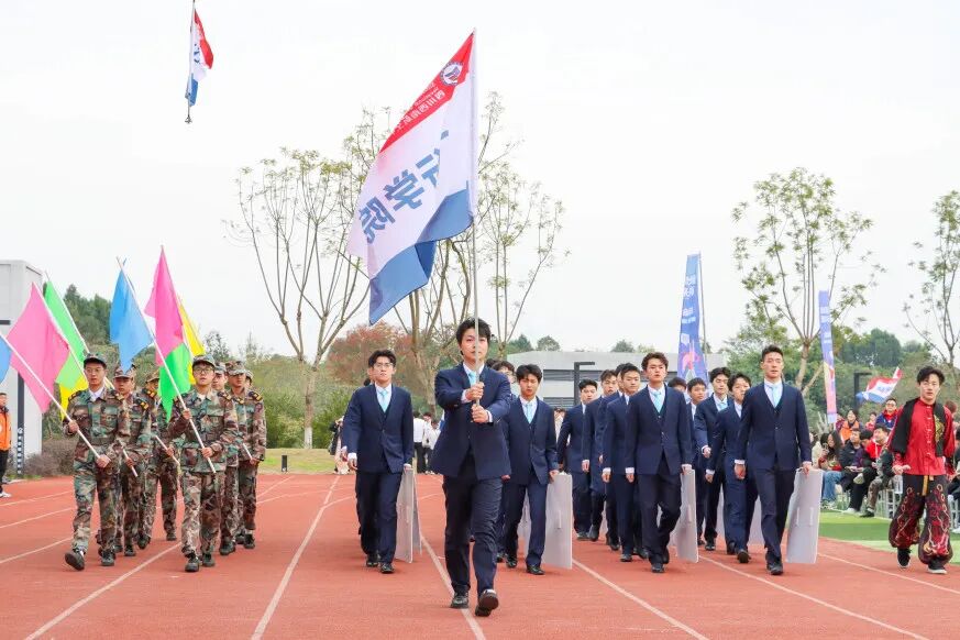 运动会的号角嘹亮吹响,国旗护卫队、裁判员代表队、各学院代表队依次入场。步伐铿锵有力、精神昂扬振奋、口号整齐划一,瞬间点燃全场热情。