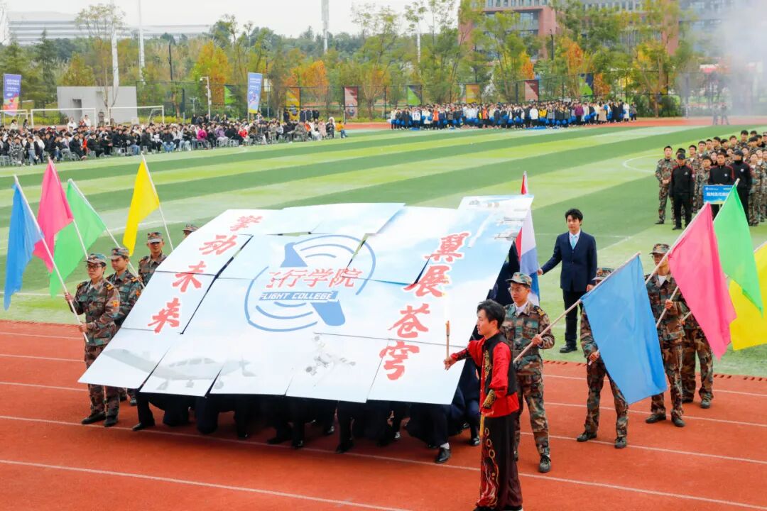 在全场期待的目光中,学院副院长苟平德宣布:“四川西南航空职业学院(东区)军体运动会正式开始!”这一刻,蓄势待发的激情被彻底点燃,掌声、欢呼声、呐喊声汇成一片!