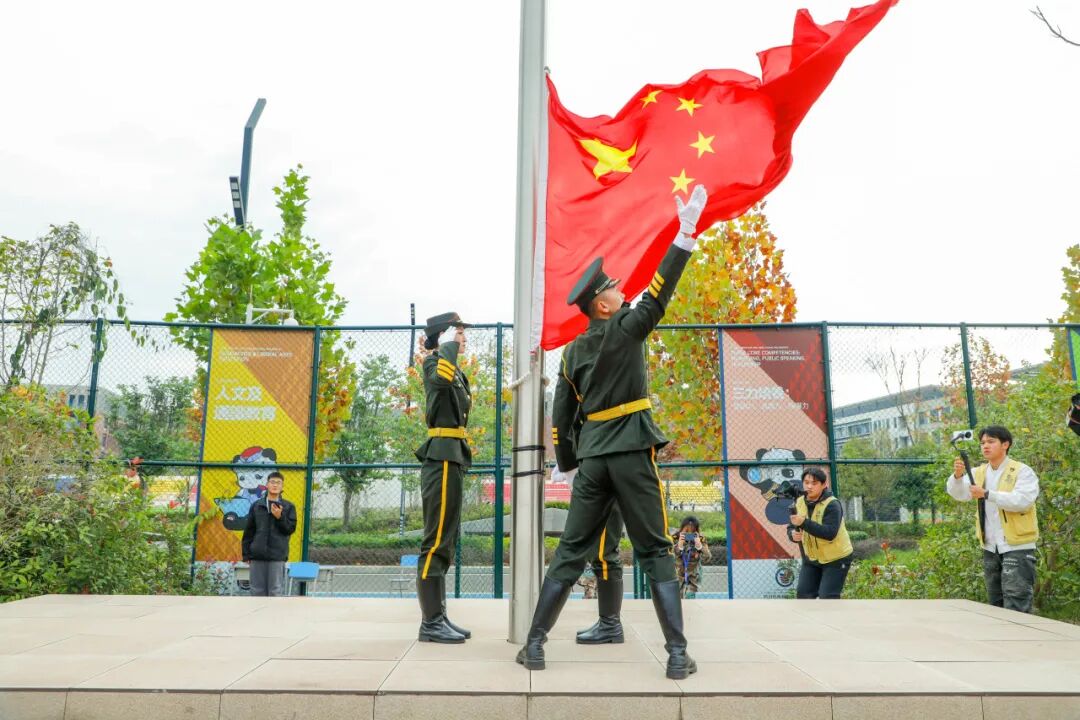 “升国旗,奏国歌!”主持人话音落下,全场肃然。激昂的国歌声中,五星红旗冉冉升起,迎风招展。全体师生庄重肃立,行注目礼,目光紧随徐徐上升的旗帜,眼中饱含着对祖国的深情与崇敬。