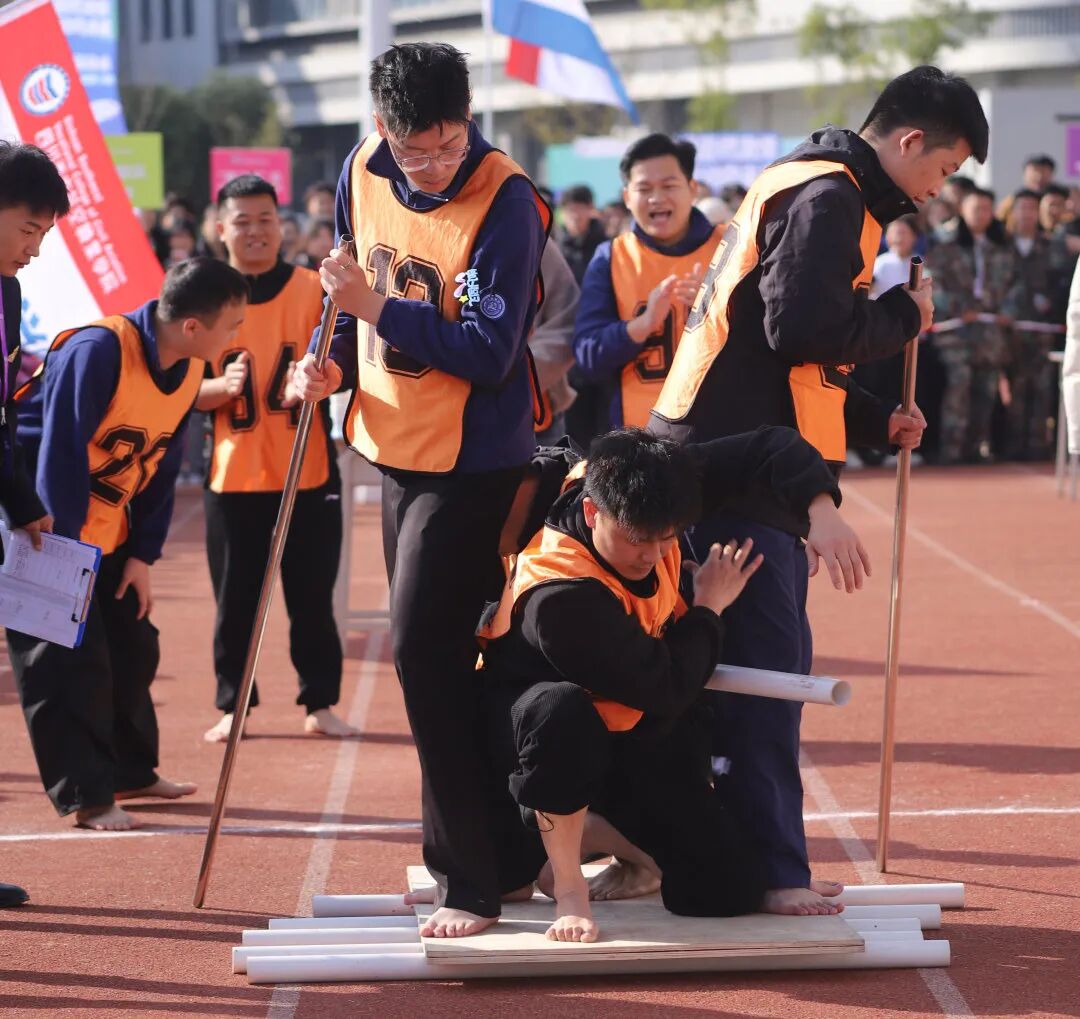 趣味接力“群龙取水”时龇牙咧嘴使劲,“一穿到底”中手忙脚乱传递,到了“信任的摇篮”,抬人的“轿夫”一脸凝重,坐“轿子”的队友笑得东倒西歪,全程高能,默契与“笑果”齐飞……