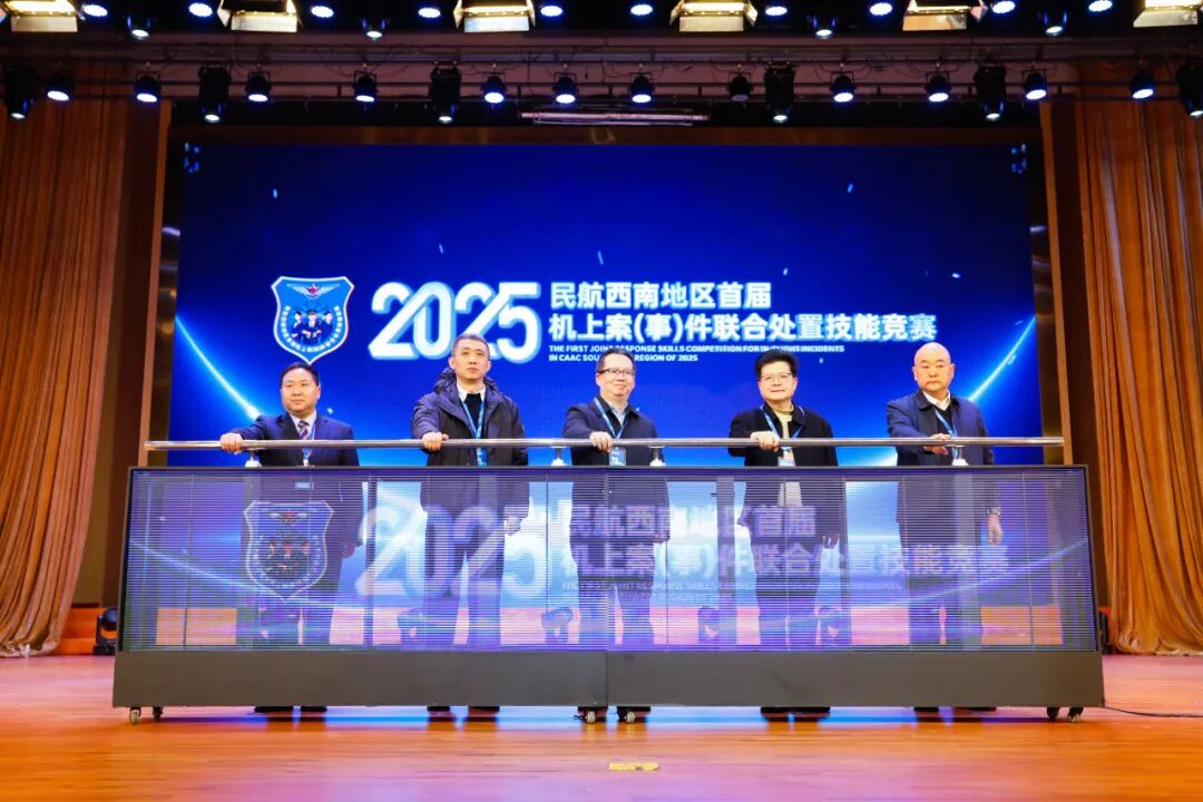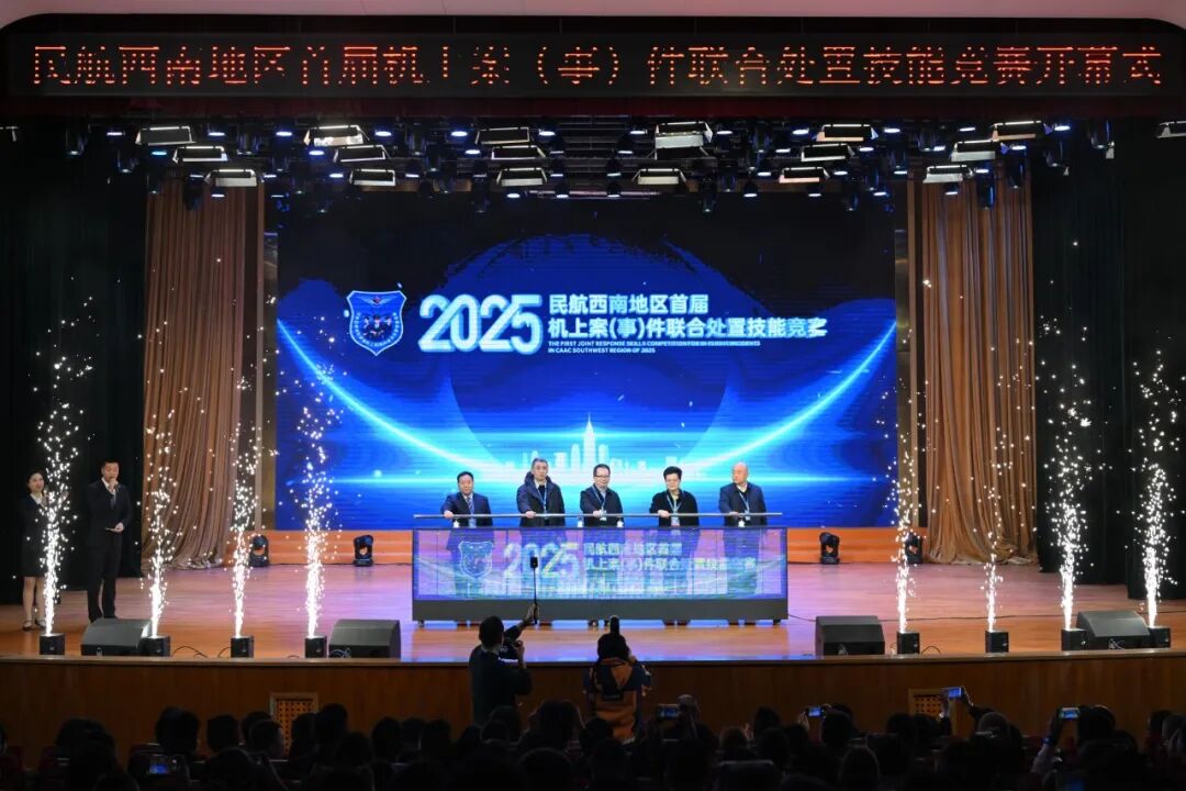 为深入贯彻习近平总书记关于民航安全工作的重要指示批示精神,巩固深化依法整治“机闹”专项行动成果,着力提升辖区运输航空公司飞行、乘务、空保三方协同处置机上突发案(事)件的专业能力,12月17日,由民航西南地区管理局主办、四川西南航空职业学院承办的2025年民航西南地区首届机上案(事)件联合处置技能竞赛隆重开幕。