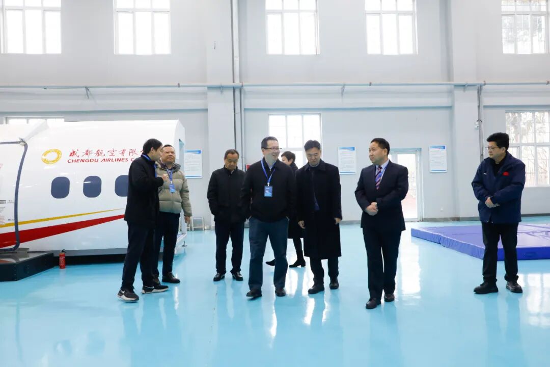 期间,民航西南地区管理局副局长、总工程师李小虎等领导一行在学院领导的陪同下,实地参观了西南航院人文经典校园、领先实训中心、成都航空西南培训中心等核心教学与实训点位,并专程走到“机上处置项目”竞赛现场,观摩选手实战操作,了解竞赛流程与评分细则。领导们对学院优美的育人环境、先进的实训设施、与行业紧密衔接的产教融合模式以及严谨专业的赛事组织工作给予了高度评价,并勉励学院继续发挥办学优势,为民航高质量发展培养、输送更多高素质技术技能人才。