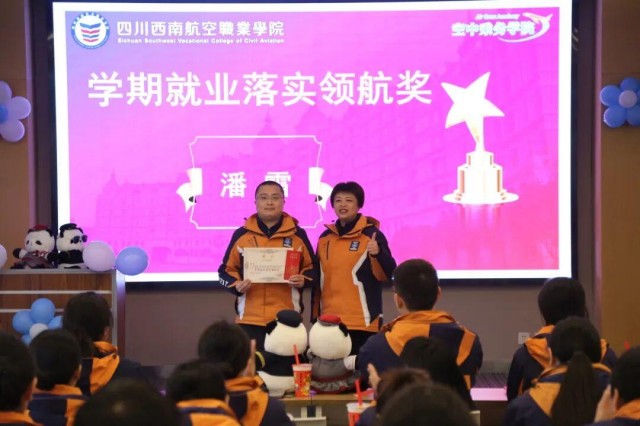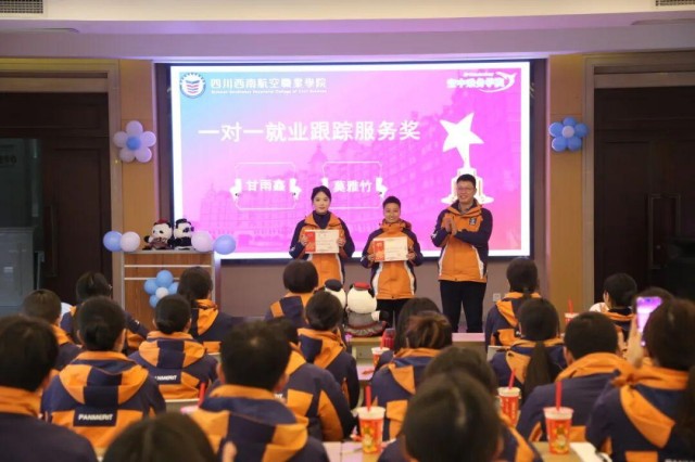 会议对本学期就业工作先进个人进行了表彰,现场颁发了学期就业先锋奖、就业落实领航奖和一对一就业跟踪服务奖。